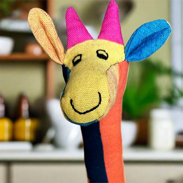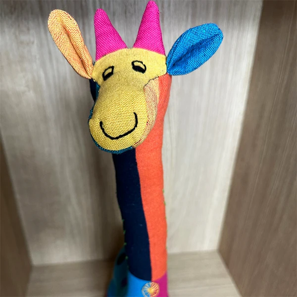Lovingly crafted from high-quality materials: Our handmade stuffed toys are made using handloom fabric. Our production process has an extremely low carbon footprint as we use traditional equipment and techniques. Our toys are handmade and hand embroidered by women artisans in Sri Lanka. Each toy possesses its unique embroidery and vibrant colours, making it an exceptional addition to any toy collection.